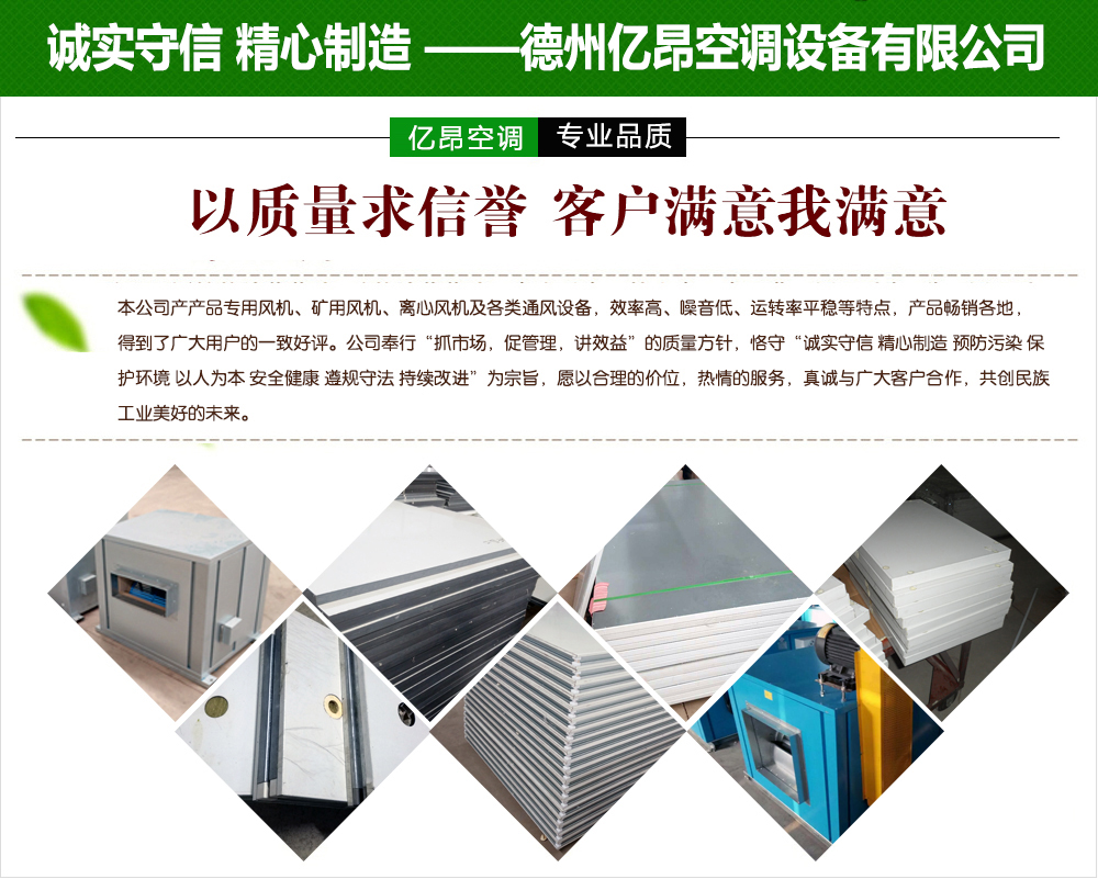 德州億昂空調(diào)設(shè)備有限公司是生產(chǎn)空調(diào)設(shè)備的專(zhuān)業(yè)廠(chǎng)家,主要產(chǎn)品有:聚氨酯高壓發(fā)泡板,空調(diào)機(jī)組聚氨酯板,消聲防火箱板,聚氨酯發(fā)泡板等,公司模具齊全、檢測(cè)設(shè)備精良,是一個(gè)專(zhuān)業(yè)制造空調(diào)設(shè)備的廠(chǎng)家。產(chǎn)品還包括:離心式和軸流式風(fēng)機(jī),有高、中、低壓風(fēng)機(jī),主要優(yōu)點(diǎn)是:節(jié)能、耐磨、耐酸,適用于各種引風(fēng)、鼓風(fēng)、排風(fēng)等,近期我廠(chǎng)研制的耐磨瓷風(fēng)機(jī),相等于鋼板耐磨6-8倍。 本公司產(chǎn)產(chǎn)品專(zhuān)用風(fēng)機(jī)、礦用風(fēng)機(jī)、離心風(fēng)機(jī)及各類(lèi)通風(fēng)設(shè)備,效率高、噪音低、運(yùn)轉(zhuǎn)率平穩(wěn)等特點(diǎn),產(chǎn)品暢銷(xiāo)各地,得到了廣大用戶(hù)的一致好評(píng)。 公司奉行“抓市場(chǎng),促管理,講效益”的質(zhì)量方針,恪守“誠(chéng)實(shí)守信 精心制造 預(yù)防污染 保護(hù)環(huán)境 以人為本 安全健康 遵規(guī)守法 持續(xù)改進(jìn)”為宗旨,愿以?xún)?yōu)質(zhì)的產(chǎn)品,合理的價(jià)位,熱情的服務(wù),真誠(chéng)與廣大客戶(hù)合作,共創(chuàng)民族工業(yè)美好的未來(lái)。十幾年來(lái),我廠(chǎng)在鍋爐、板廠(chǎng)、化工、扎花加工,窯廠(chǎng)、面粉廠(chǎng)、脫水蔬菜廠(chǎng)等方面制做的風(fēng)機(jī)...